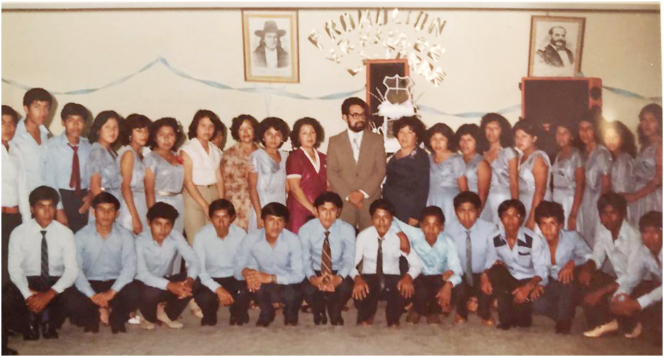 Promoción Víctor Raúl Haya de la Torre - Golegio Inca Garcilaso de la Vega. Huarmey . Padrino, Alfonso Ramos Alva, entonces senador de la República.
